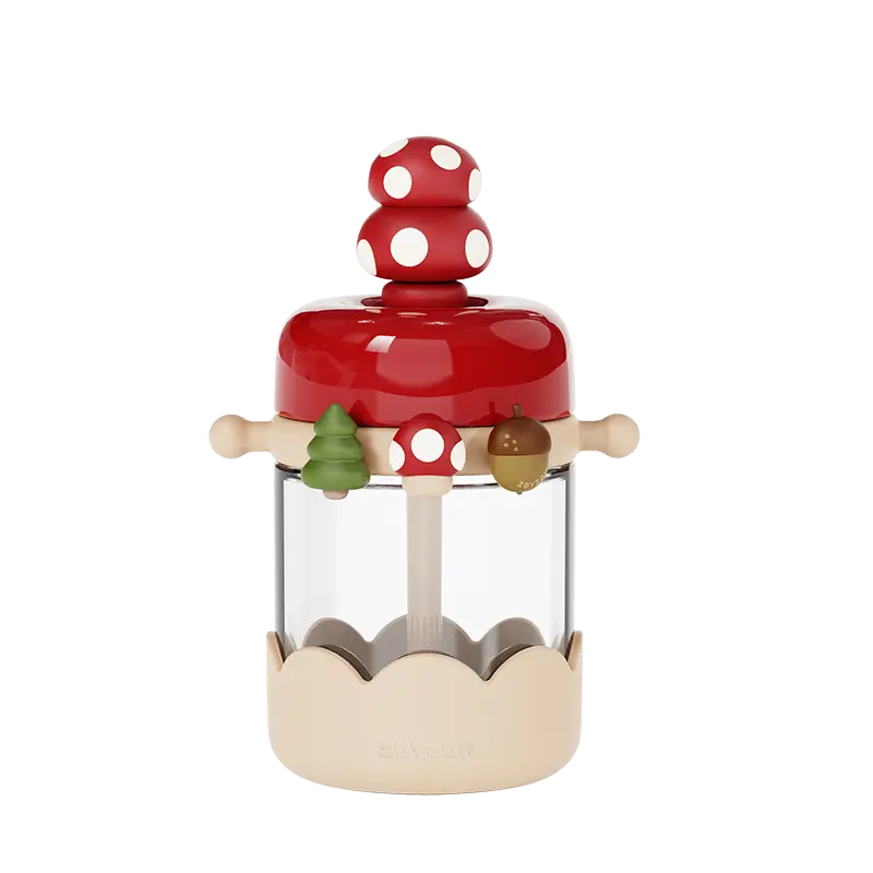 Czy bidon może stać się ulubionym gadżetem Twojego dziecka? Tak, jeśli wygląda jak „Leśny Muchomorek”! Model z serii Cooling Paradise to propozycja dla rodziców, którzy szukają produktów pięknych, a zarazem niezwykle funkcjonalnych. Głęboka czerwień nakrętki w białe grochy przyciąga wzrok, ale to detale robią największe wrażenie – na pierścieniu umieszczono silikonowe elementy 3D: choinkę, małego grzybka i żołądź, które dziecko może dotykać, rozwijając zmysły podczas picia.